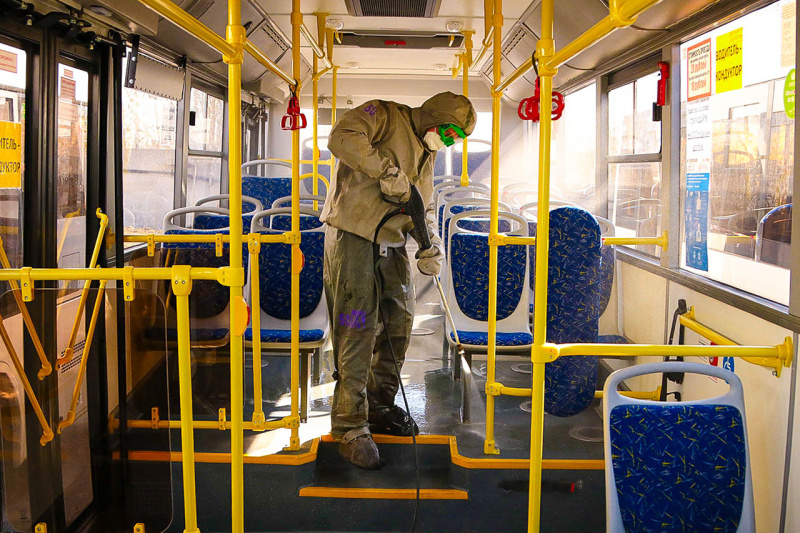 На территории ПАТП сотрудники специализированной пожарно-спасательной части Федеральной противопожарной службы Главного управления МЧС России по Брянской области проводили дезинфекцию как кузовов, так и салонов автобусов. При этом задействовали различную спецтехнику: комплекс специальной обработки личного состава и техники на базе автомобиля «КамАЗ», а также три мобильных комплекса спецобработки.